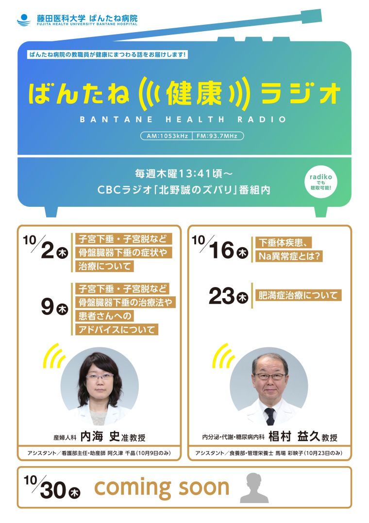 CBCラジオ「ばんたね健康ラジオ」10月放送のお知らせ