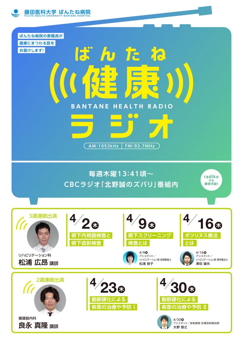 CBCラジオ「ばんたね健康ラジオ」4月放送のお知らせ