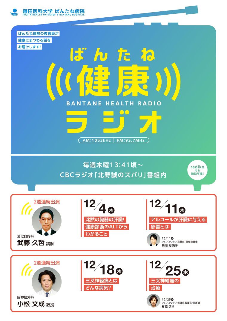 CBCラジオ「ばんたね健康ラジオ」12月放送のお知らせ
