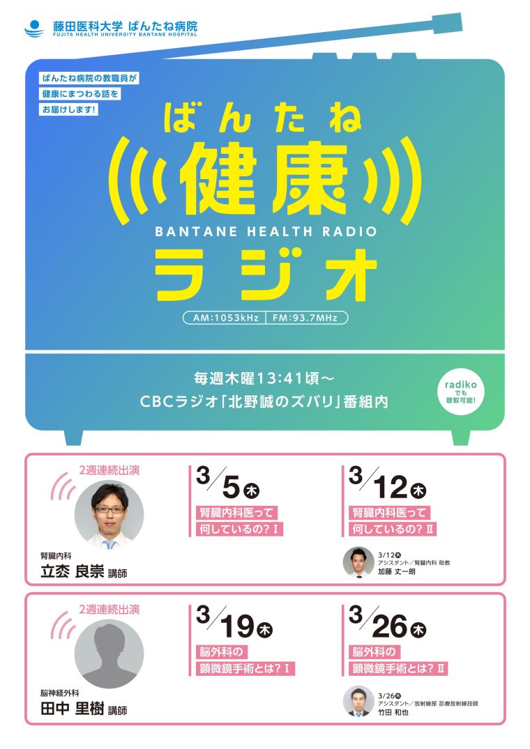 CBCラジオ「ばんたね健康ラジオ」3月放送のお知らせ