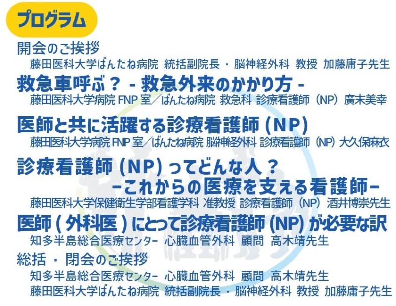 市民講座「ご存じですか?診療看護師(NP)」開催のお知らせ
